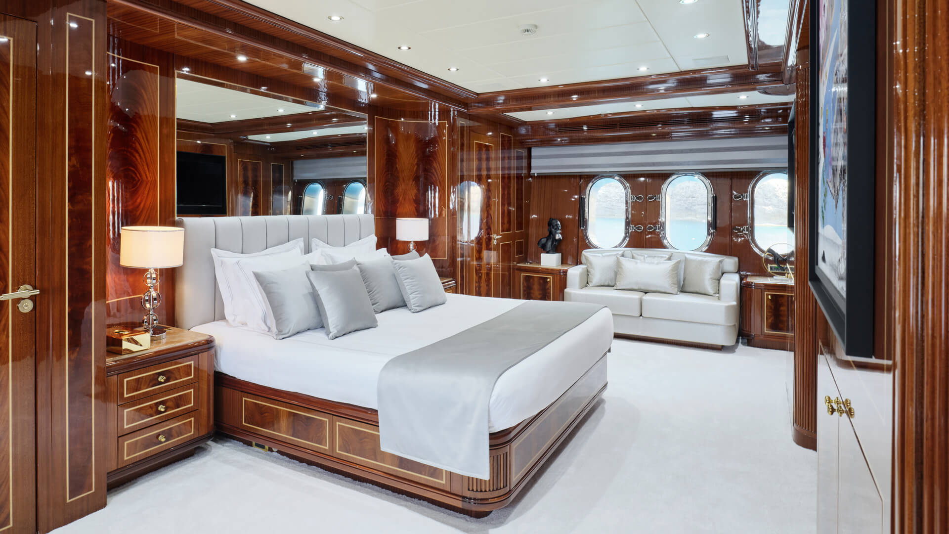 Cabins: 5 (• 1 x Master Suite • 1 x VIP Suite • 1 x Double Stateroom with a pullman berth • 1 x Office convertible to a Double Stateroom • 1 x Twin Stateroom)