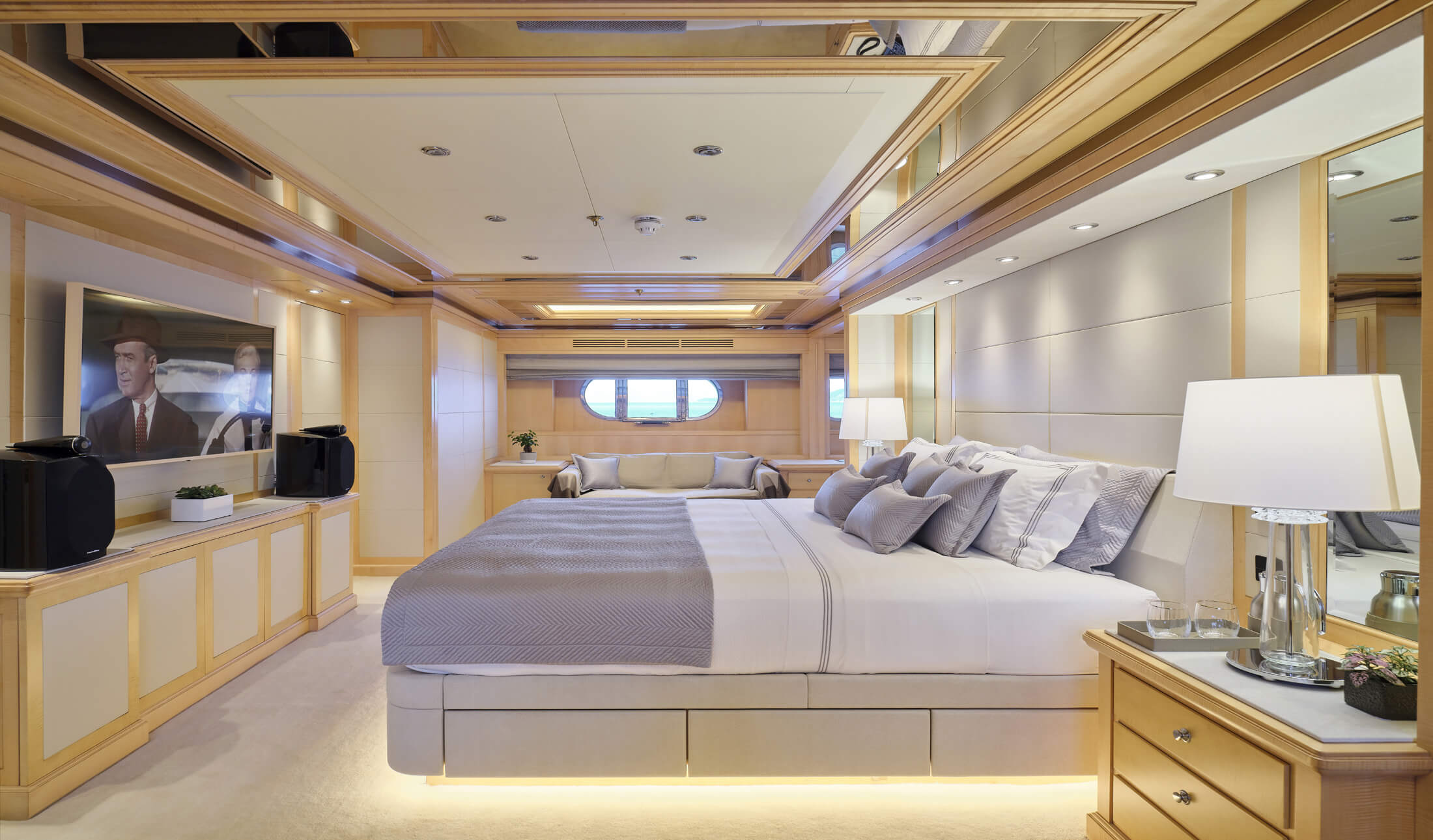 Cabins: 5 (• 1 x Master Suite • 2 x VIP Suites • 2 x Twin Staterooms on lower deck with a Pullman berth each – both convert to double staterooms)