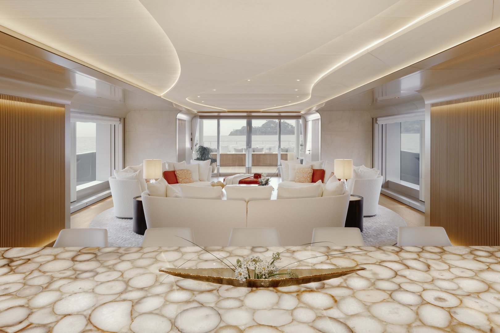 - Seven opulent staterooms harmoniously blend Nordic minimalism with Mediterranean warmth